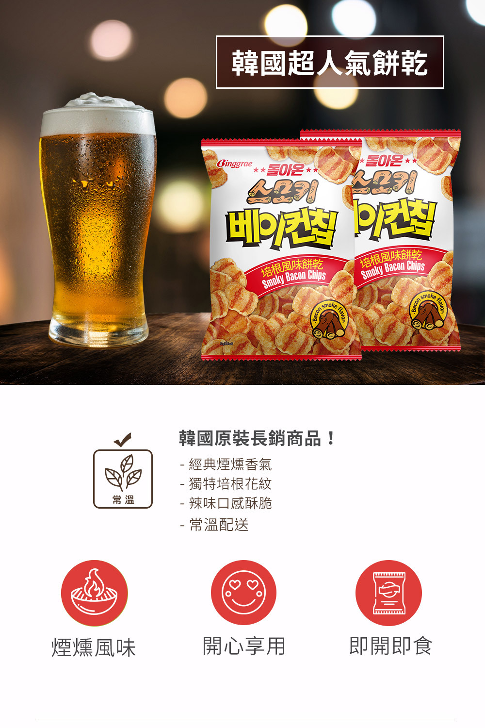 小麥粉,軟質棕櫚油[軟質棕櫚油,抗氧化劑(混合濃縮生育醇)],玉米澱粉,燻培根調味粉[莎樂美腸調味粉(葡萄糖,鹽,洋蔥粉,蒜粉,莎樂美腸香料),磷酸鈣,培根調味粉(酵母提取粉,鹽,糊精,培根粉),糖粉,鹽,L-麩酸鈉],乾馬鈴薯粉,培根調味粉[麥芽糊精,基底培根調味粉(糊精,葡萄糖,鹽,培根),鹽, 5’-次黃嘌呤核苷磷酸二鈉, 5’-鳥嘌呤核苷磷酸二鈉,胺基乙酸,醬油粉(小麥,大豆,鹽)],麵筋,糖,鹽,乾大蒜粉(乾蒜,玉米澱粉),黃梔子色素,混合製劑(丙二醇,紅麴色素,高粱色素,婀娜多提取物,水),混合製劑(辣椒提取物,紅麴色素),磷酸鈣 |