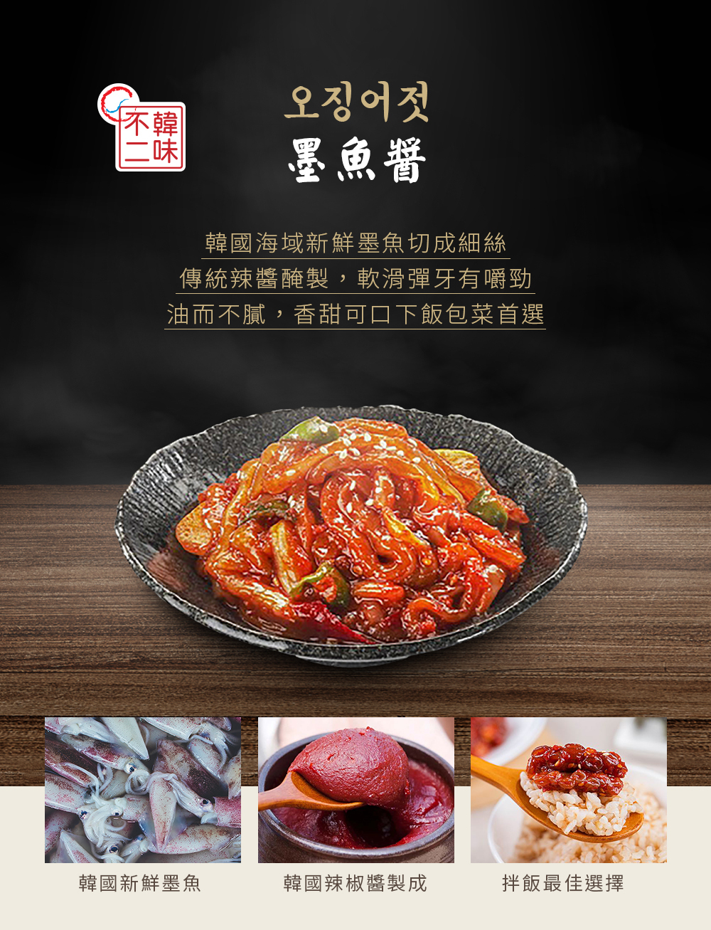 ▶ 嚴選新鮮墨魚切段醃製,口感軟滑鮮甜