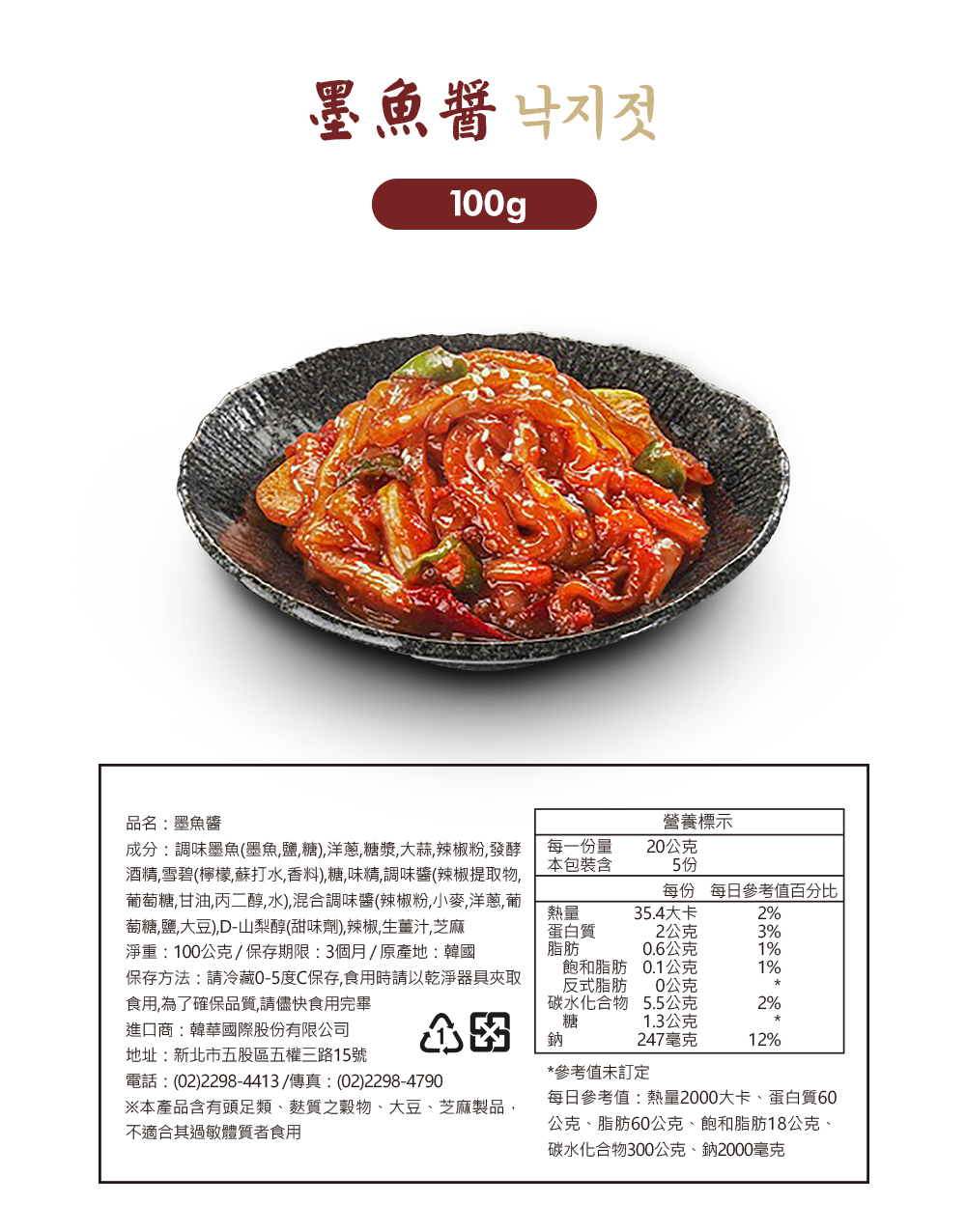 ※本產品含有頭足類、麩質之穀物、大豆、芝麻製品,不適合其過敏體質者食用 ※本商品性質具備消保法第十九條所定之合理例外情事「保存期限較短商品」,購買後不得於七日內不附理由解除契約,請理解後再行購買 |
