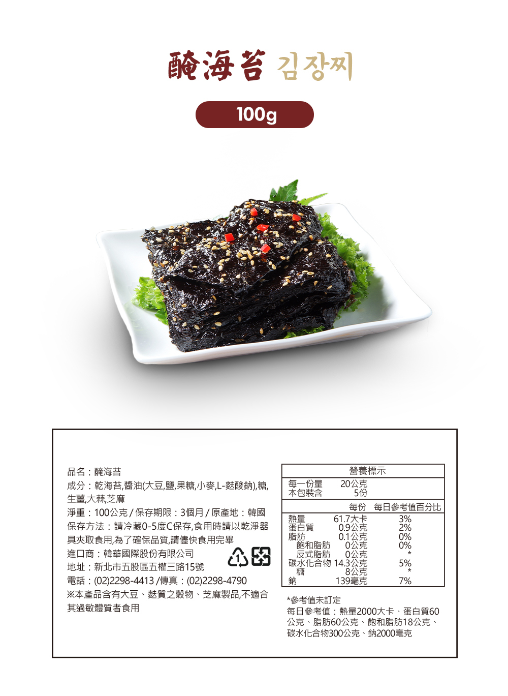 | 進口商 | 韓華國際股份有限公司 |