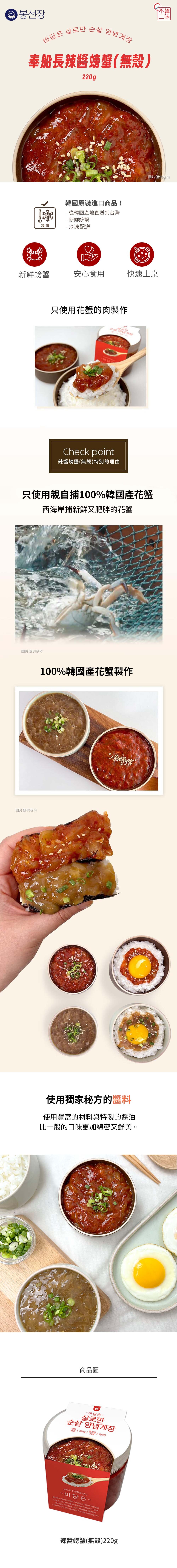 韓國奉船長-醬油螃蟹(無殼) 220g
