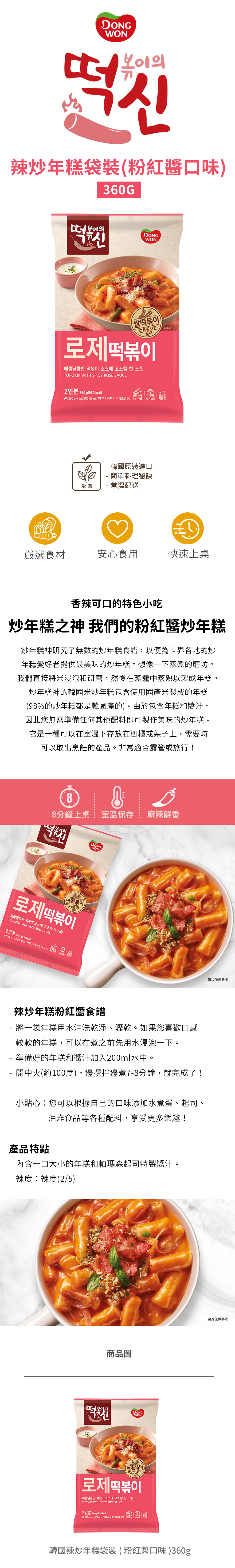 | 品名 | 韓國辣炒年糕袋裝(粉紅醬口味) |