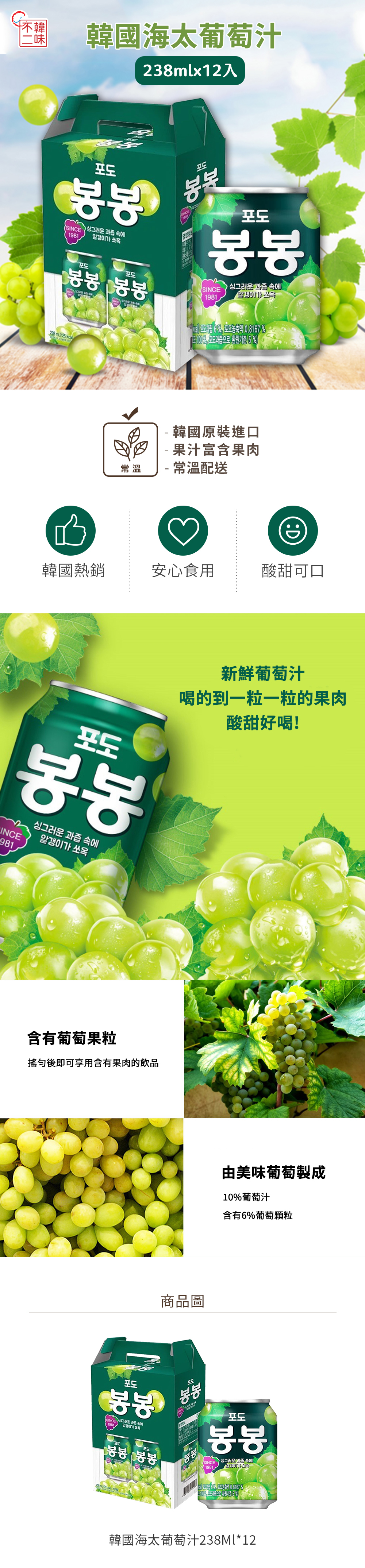 | 成分 | 水, 葡萄糖漿, 葡萄果粒,葡萄濃縮液,檸檬酸,香料,檸檬酸鈉,維生素C(抗氧化劑) |