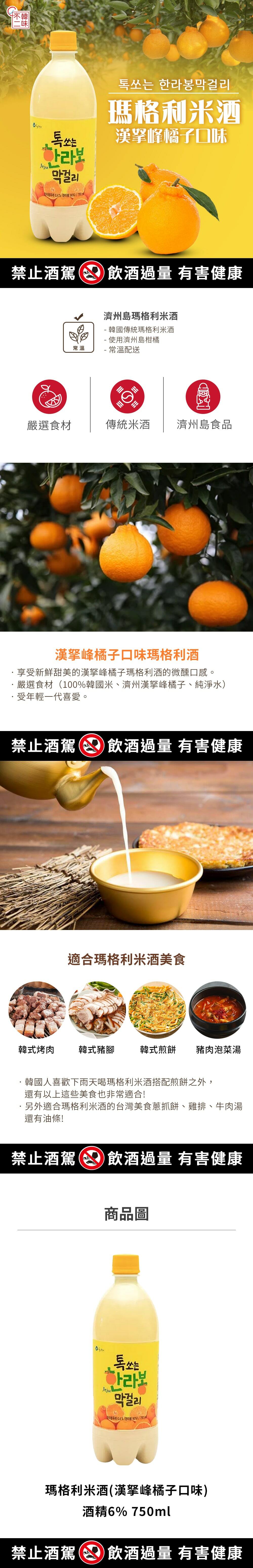 | 品名 | 韓國米酒(濟州島橘子口味) |