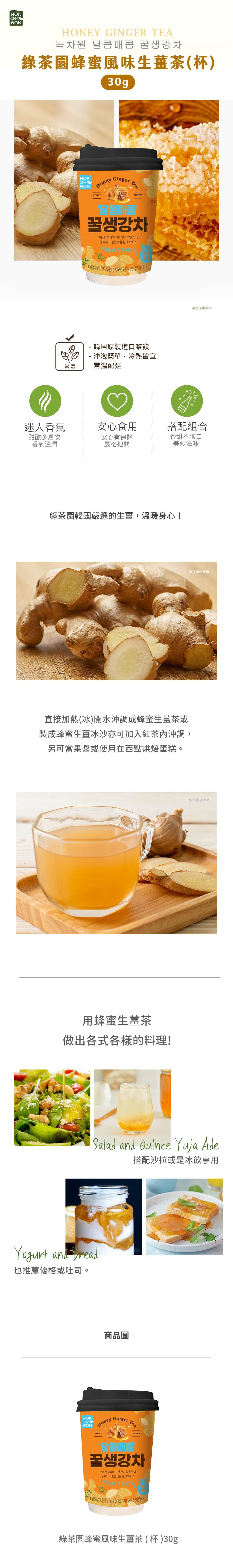 | 品名 | 綠茶園蜂蜜風味生薑茶(杯) |