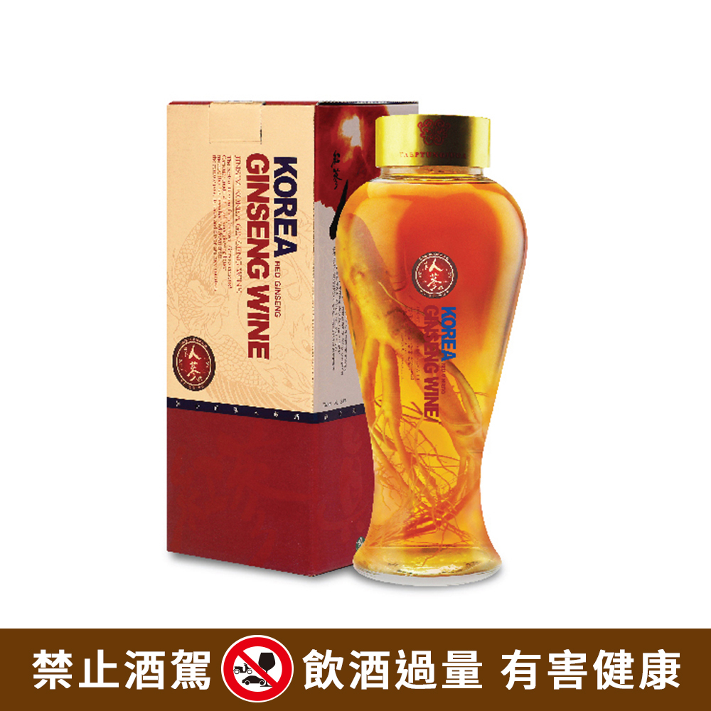 | 成份 | 蒸餾燒酒(米,酵母,麴菌),人蔘,紅蔘濃縮液0.114%,酒精,水 產品種類:再製酒 酒精濃度:38% |