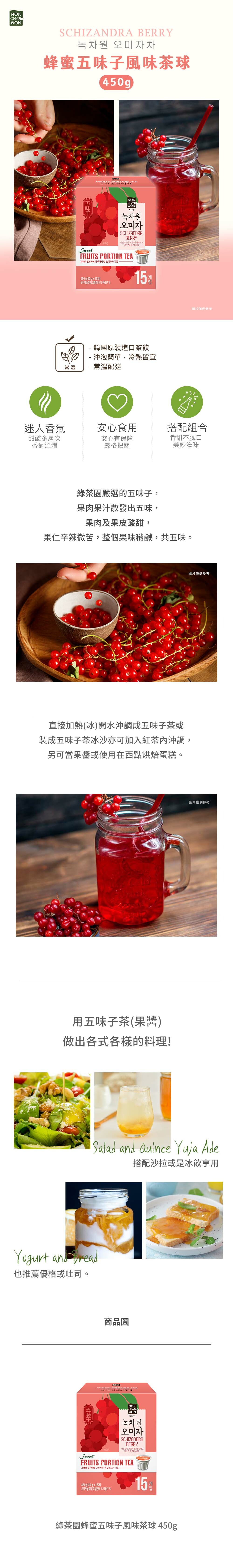| 品名 | 綠茶園蜂蜜五味子風味茶球 |