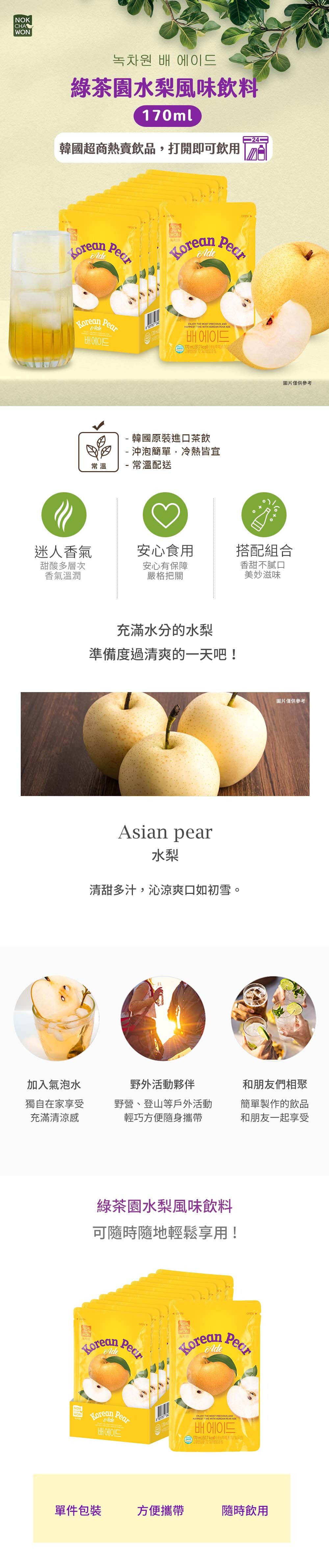 | 成份 | 水,糖,梨子濃縮(梨子果汁),香料,無水檸檬酸,綠茶萃取物,維生素C(抗氧化劑),羧甲基纖維素鈉(粘稠劑),蔗糖素(甜味劑) |