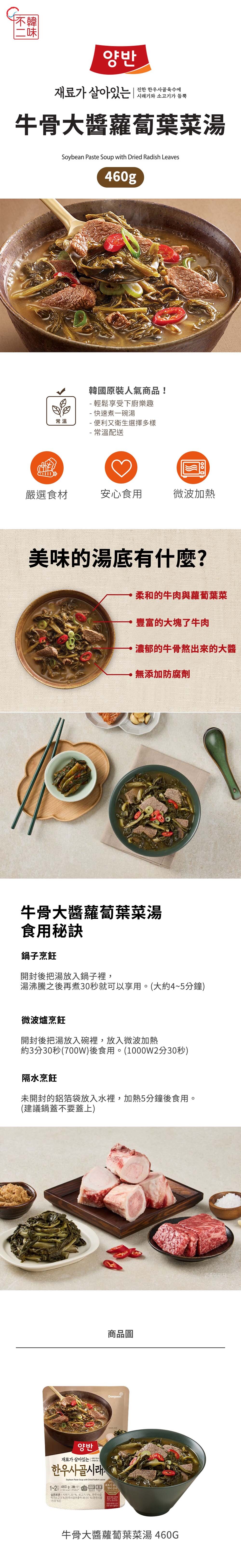 | 品名 | 牛骨大醬蘿蔔葉菜湯 |