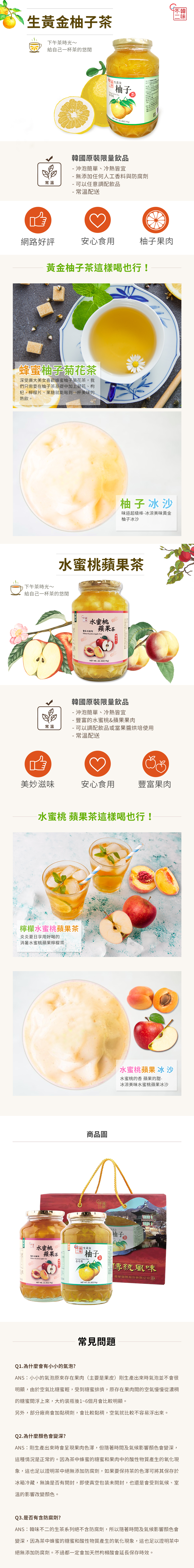 ▶ 生黃金柚子茶+水蜜桃蘋果茶 熱門口味獨家組合